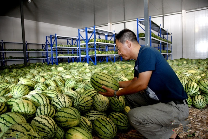 西瓜冷藏適宜的相對(duì)濕度為80-85%,由于蒸發(fā)管經(jīng)常不斷地結(jié)附冰霜,又不斷地將冰霜沖走,以及建筑物多用水泥材料,致使庫內(nèi)濕度降低,達(dá)不到西瓜對(duì)濕度的要求,可在地面灑潔凈水或鋪濕草簾。